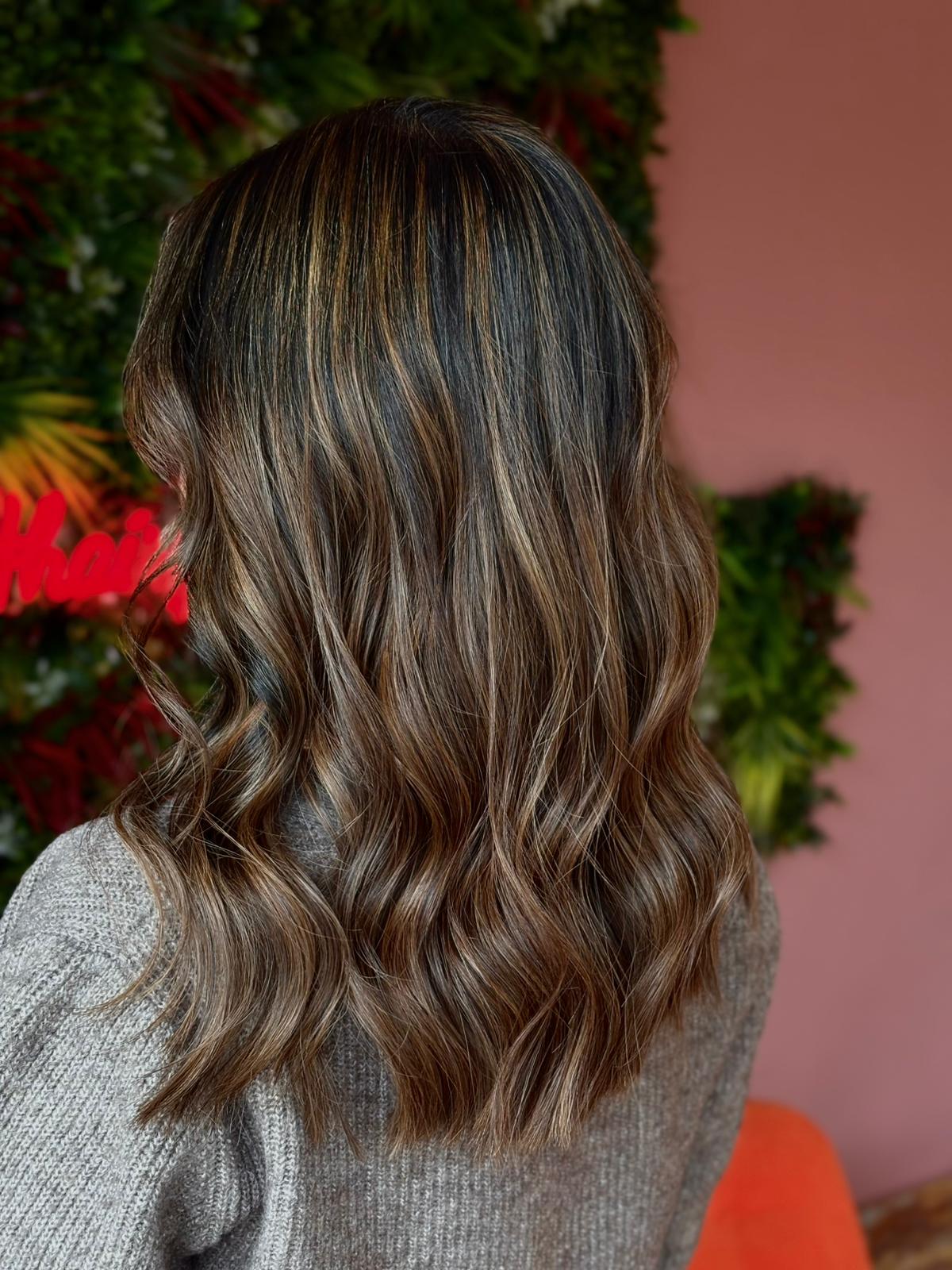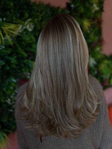 - zarte Aufhellung und Haare bis Schlüsselbein